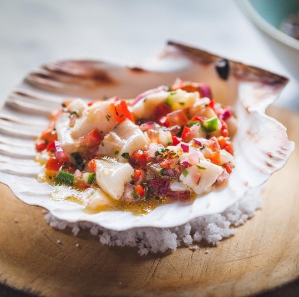 Mix the seafood with the dressing and IMMEDIATELY place on top of the reserved oyster or scallop shells.