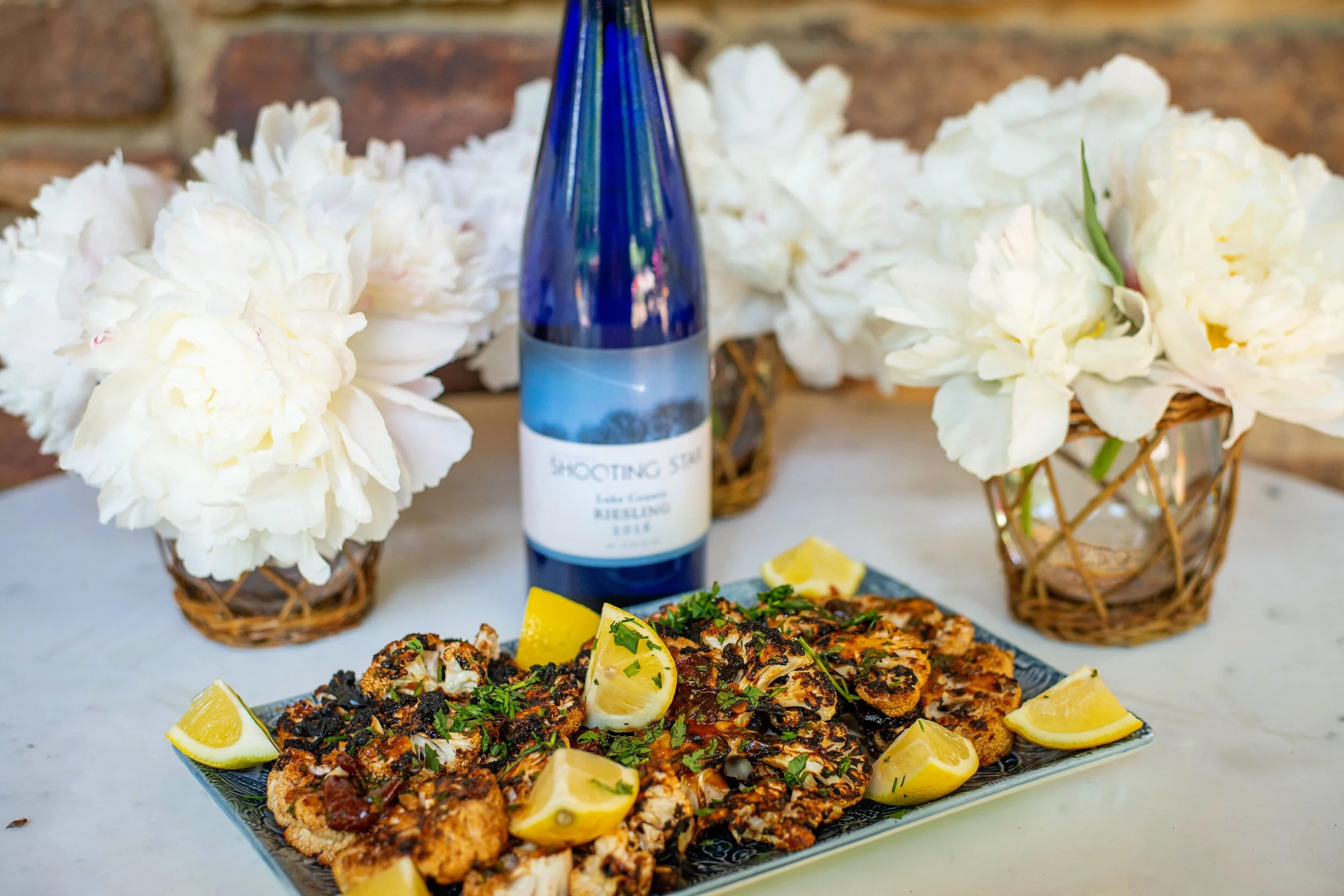 We love vegetables on the grill, and one of our favorites is this recipe for Spiced Cauliflower Steaks with Cilantro and Chives now available in the June issue of Citiscapes Magazine - strong enough for an entree, but made for a side, these dark, nutty, sweet and savory cauliflower steaks are certain to be a hit this week for dinner, paired brilliantly with this Shooting Star Riesling, teeming with honeysuckle, orange blossom notes.